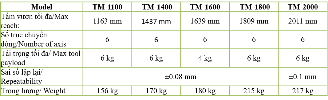 Dòng Panasonic TAWERS™ TM là dòng robot hàn mới nhất của hãng Panasonic, so sánh với dòng TA trước đó, rất nhiều tính năng, cải tiến đã được áp dụng: cải thiện tầm vươn, làm mới lại và tăng hiệu quả quản lý dây hàn, cải thiện tốc độ cấp dây hàn dựa trên thiết kế cánh tay rỗng và giải pháp hybrid. Hiệu suất của dọng TM cải thiện được các yếu tố quan trọng ảnh hưởng chất lượng sản phẩm như: chất lượng, độ chính xác, sự linh hoạt, và chu kỳ hàn.